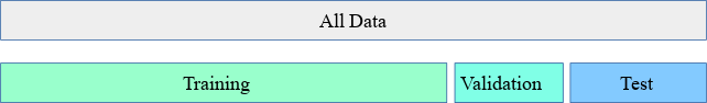 在前面的章节和笔记本中,我们将数据集分为两部分:训练集和测试集。 我们使用训练集来拟合我们的模型,并且我们使用测试集来评估其泛化能力 - 它对新的,没见过的数据的表现情况。