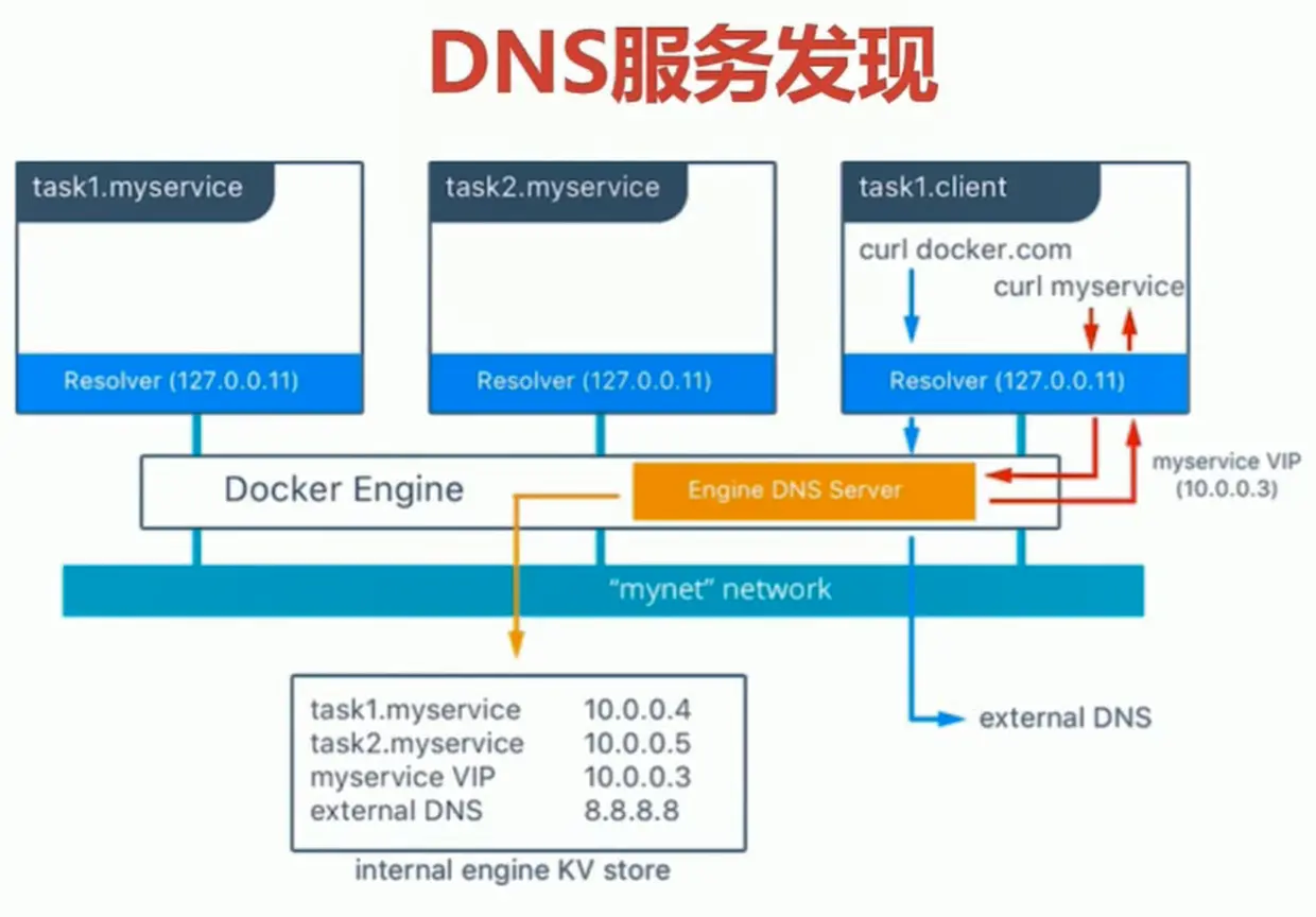 为什么呢 ip不发生变化,其实我们ping的地址是一个虚拟的ip,docker 集群默认使用 Overlay 网络驱动,Overlay 驱动实现了跨主机集群内部虚拟网络。它的作用:将运行的多个容器(不同主机),附加(attach to)到一个网络默认情况下,服务发现为群集中的每个服务分配虚拟IP地址(VIP)和 动态 DNS,使其可以通过服务名称将其提供给同一网络上的容器。即在一个 Overlay 虚拟网络内,使用服务名称访问,将实现任务级别的负载均衡在群集中使用覆盖网络,需要在群集节点之间打开以下端口: