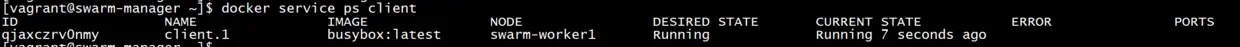 docker service create --name client -d --network demo busybox sh -c "while true;do sleep 3600;done"