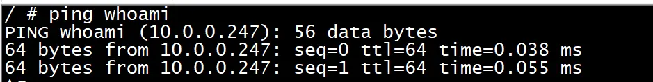 #worker1 上ping whoami发现ip没有发生变化10.0.0.247