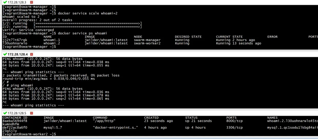 docker service scale whoami=2