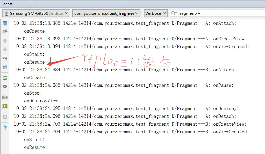 既然是replace的操作,必然和两个Fragment有关,demo中是FragmentA先被add,然后被FragmentB替换掉: