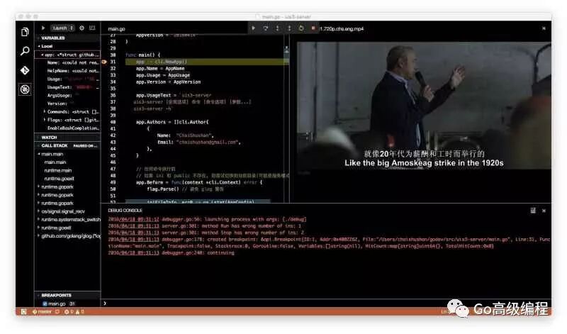 VSCode虽然是基于Gtihub Atom而来,不过VSCode支持Go语言的代码自动补全和调试功能,因此已经超越Github Atom单作为编辑器的定位,是一个轻量级的集成开发环境。VSCode对于大文件的支持也比Gtihub Atom优秀很多。