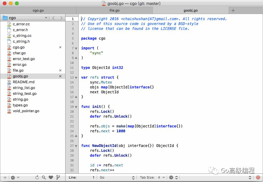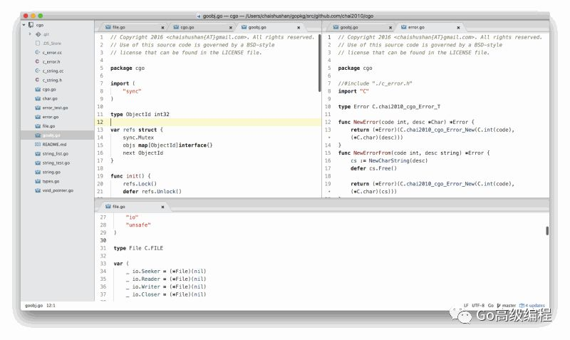 对于macOS平台的用户,免费的轻量级编辑器软件推荐TextMate。TextMate是macOS下的Notepadd++工具。支持目录列表,支持Go语言的诸多特性。下面是TextMate的预览图: