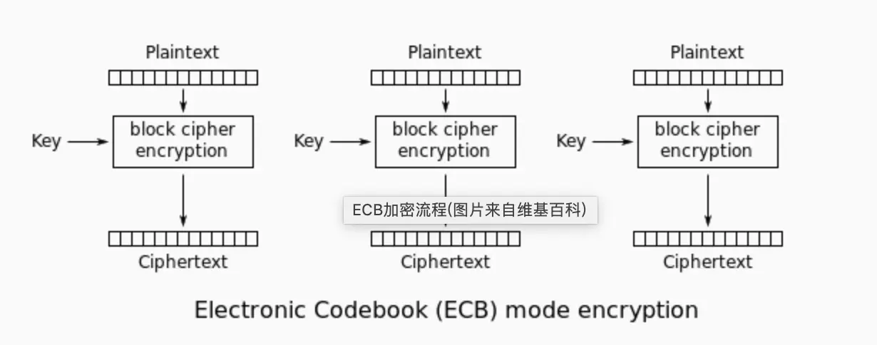 ECB 是最简单的 AES 算法,用秘钥分别对填充后的分组数据进行加密得到密文。所以密文和明文的长度成正比。