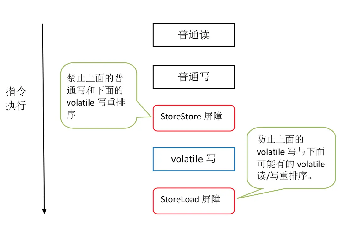 - StoreStore屏障可以保证在volatile写之前,所有的普通写操作已经对所有处理器可见,StoreStore屏障保障了在volatile写之前所有的普通写操作已经刷新到主存。