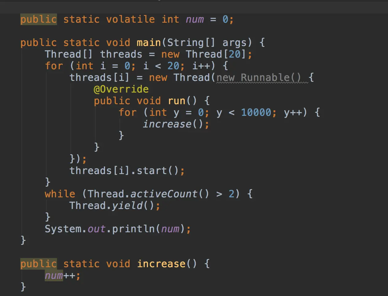 即使JMM对volatile做了这么多的工作,它也仅仅只保证了volatile变量在原子性操作下多个线程之间的正确同步,对非原子操作,使用volatile仍然会发生无法预知的结果。