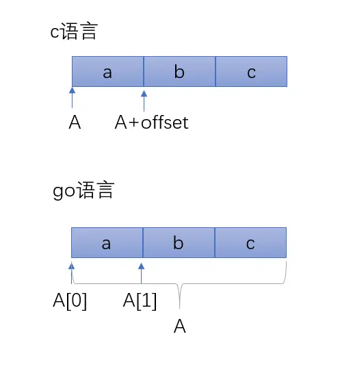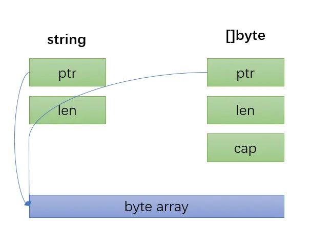 一个字符串在内存中究竟什么样子? C语言字符串是一个字节数组加一个结束符。Go语言字符串标准结构是指针和长度,指针指向一个字节数组。