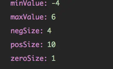 这里定义的map的长度为最大值和最小值的差值 + 1,以及定义两个int[],长度分别是nums中大于0和小于0的元素的个数,估计是用来保存对应的元素的,然后置0 negSize和posSize。