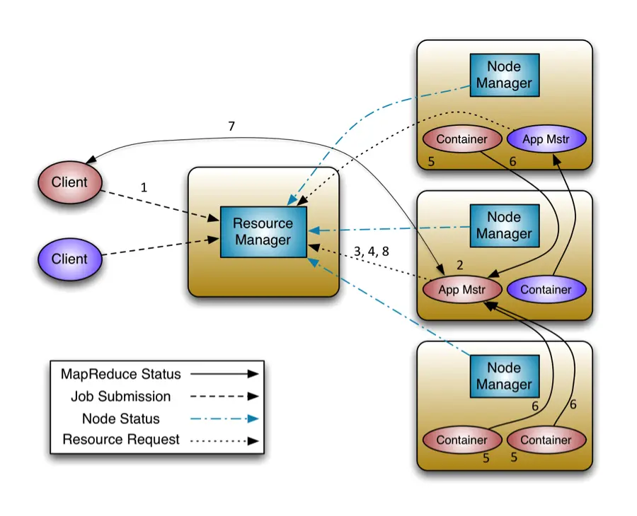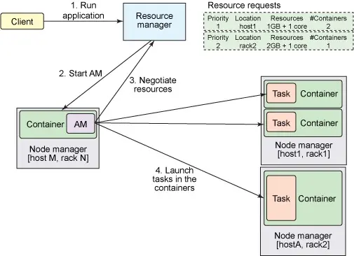 resource-request协议向 ResourceManager 发送resource-request请求; - 当 Container 被成功分配后,ApplicationMaster 通过向 NodeManager 发送