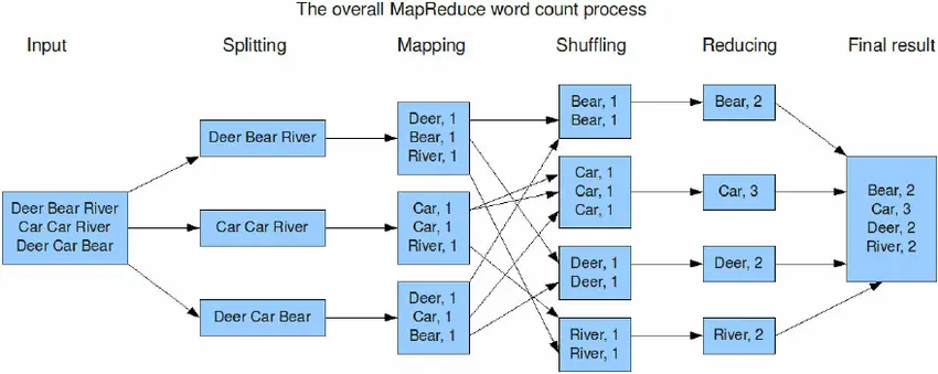 在 MapReduce 中,我们将作业划分为多个节点,每个节点同时处理作业的一部分。因此,MapReduce 基于Divide and Conquer范例,它帮助我们使用不同的机器处理数据。由于数据由多台机器而不是单台机器并行处理,因此处理数据所需的时间会减少很多。