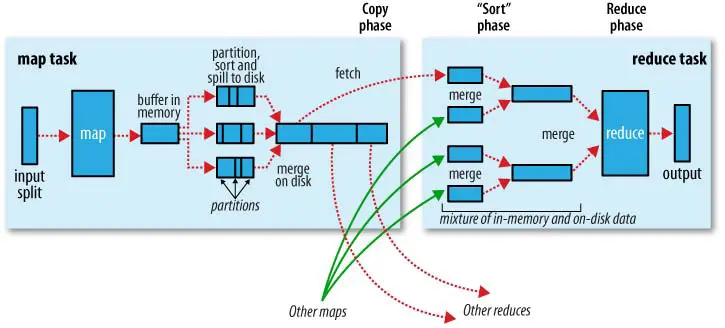 Map()在K1键值对上运行一次,生成由K2指定的键值对的输出; - Shuffle the Map output to the Reduce processors:将先前生成的