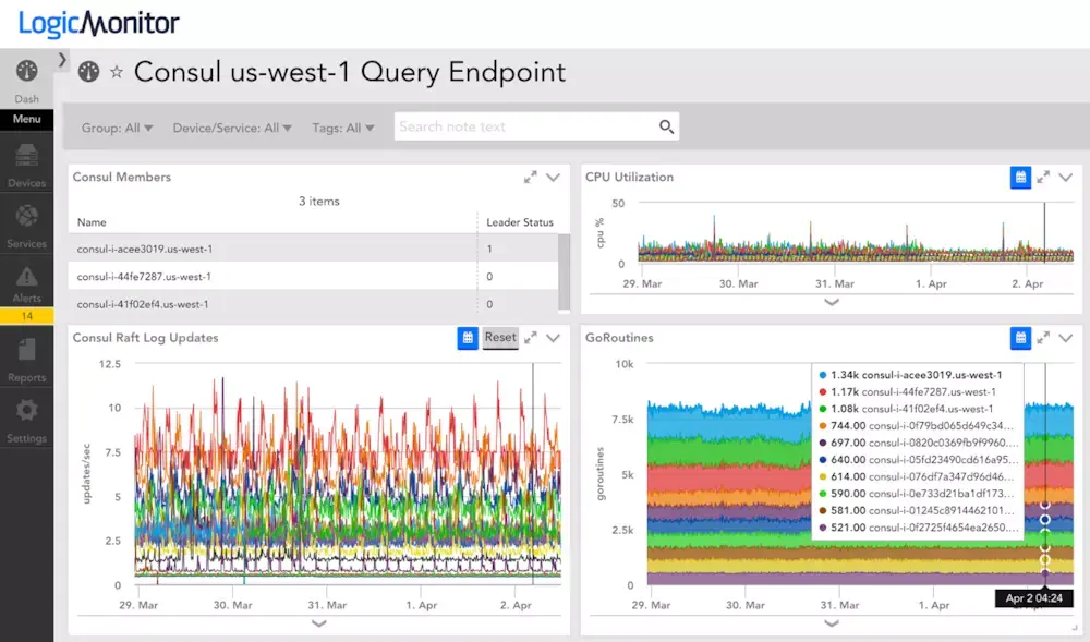 通过开发我们自己的Terraform Providers, 解决了在 DR 过程中需要手动干预的一些情况。我们创建了两个独立的providers, 每个都实现一个独特的任务。由于我们的团队使用 LogicMonitor 作为停机的真相来源, 我们需要一种方法来加载 Terraform 创建的资源到我们的 LogicMonitor 帐户中。然后, 我们可以根据需求监控这些资源, 并知道它们何时需要服务。如果Consul健康检查失败 (在下一节中对此有更多的了解), 我们希望马上得到通知。