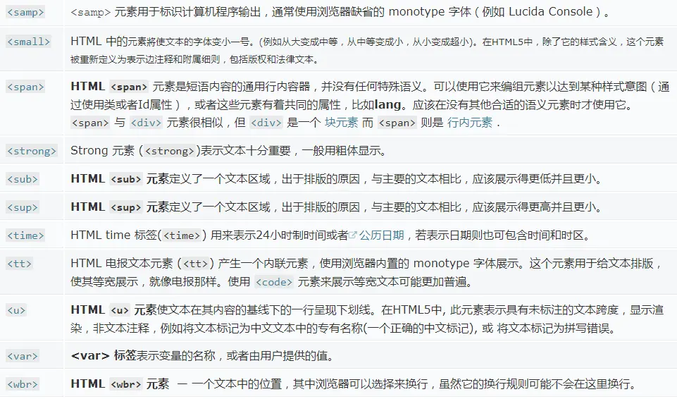 使用 HTML 内联文本语义(Inline text semantics)定义语句,结构,可以是一个词,一段,或任意风格的文字。