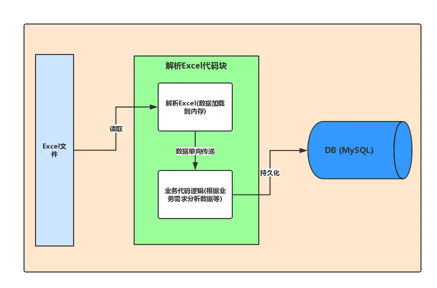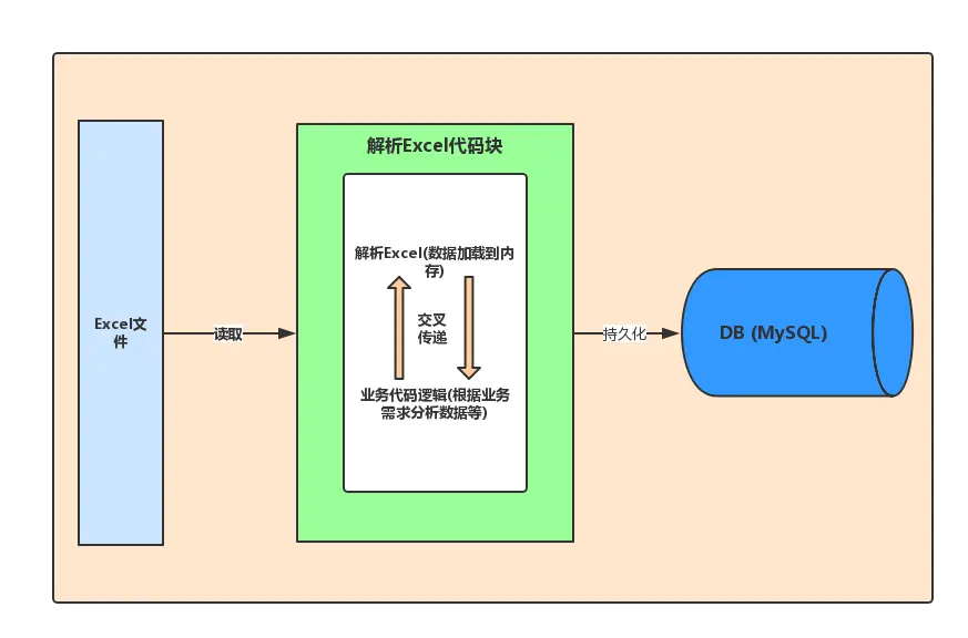 1.非动态模式:将Excel数据加载到内存与业务代码逻辑混合,数据在解析期间交叉传递。弊端:每新增一个需要解析的Excel,解析Excel代码块就需要重新开发,代码复用率底下、可扩展性也低。