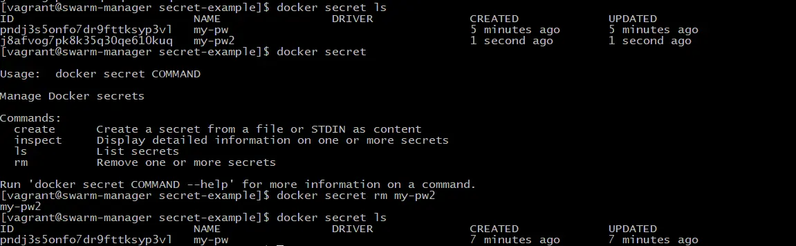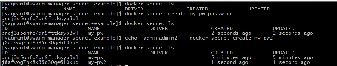 echo 'adminadmin2' | docker secret create my-pw2 -