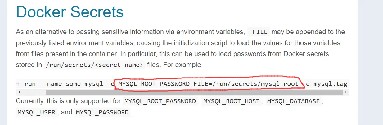 之前咱们写的docker-compose.yml里面,里面有mysql的时候有变量MYSQL_ROOT_PASSWORD: root,如果别人拿到了这个文件直接root是不是就暴露了,很不安全,针对这个问题,docker-secret都替咱们解决了。源码:github.com/limingios/d…