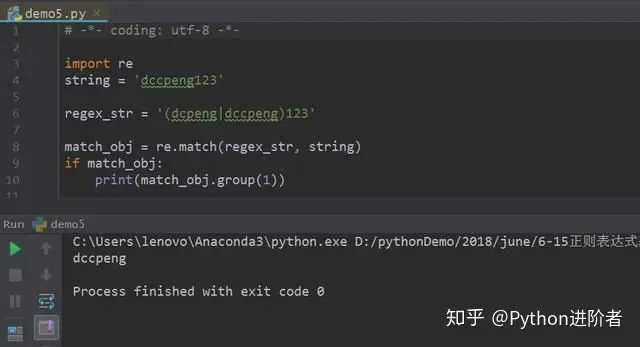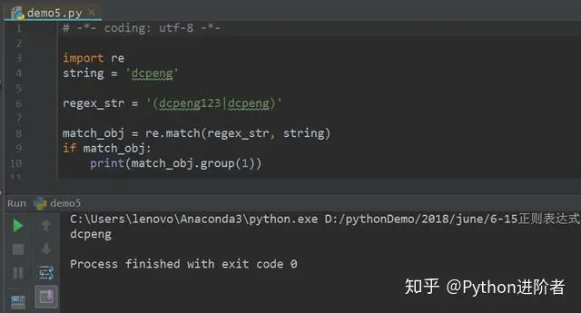 此时可以看到输出的结果为“dcpeng”。这里容易犯错,很多小伙伴很可能以为结果是“dcpeng123”,只需要记住我们匹配的内容只是在括号中,外边的世界与我们无关。