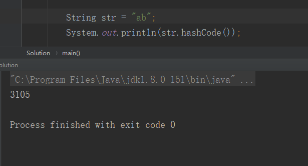 在 哈希值等于 0 且字符串不为空时,才计算哈希值,否则就返回 0,计算方法就是 for 循环里的,举个简单的例子算一下: