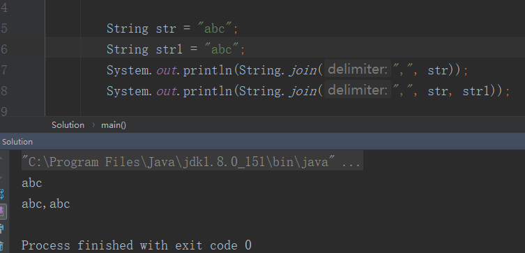 这里引出另一个类:StringJoiner,这里不介绍,如果只有一个字符串,就不会添加分隔符,若有多个,则在每两个拼接的字符串中添加分隔符: