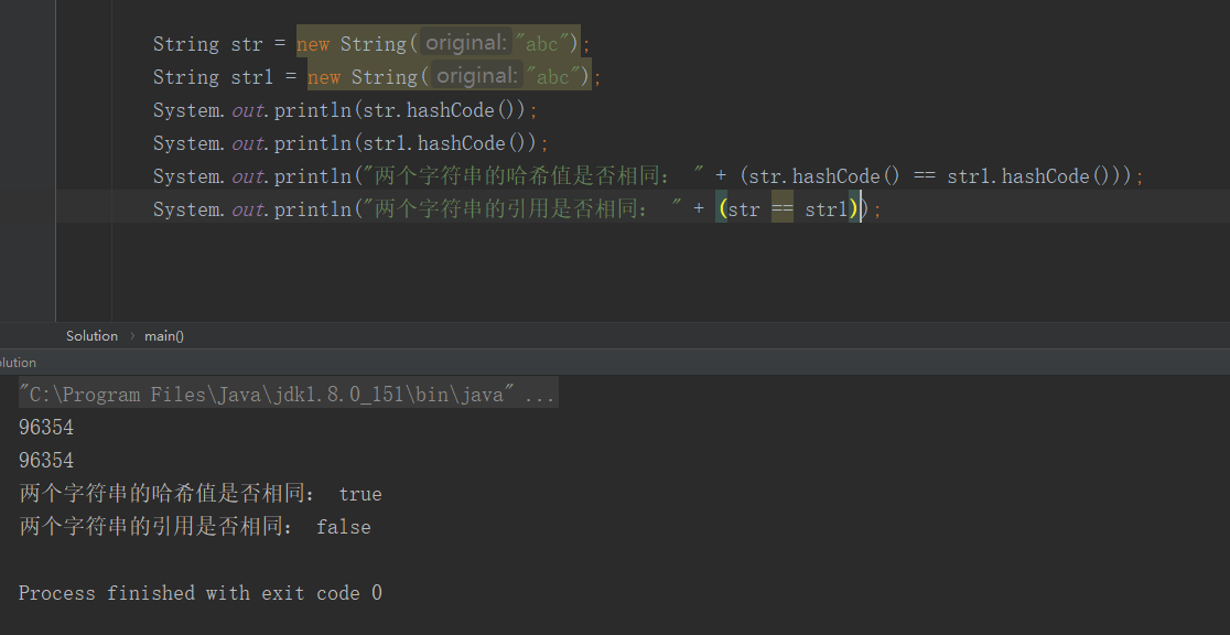 通过对字符串的哈希值的比较,能够得出两个字符串的值是否相同,但是却不能用来比较两个对象的引用: