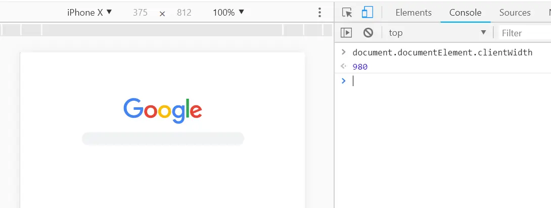 可以看到,默认的布局视口宽度为 980px。如果要显式设置布局视口,可以使用 HTML 中的 meta 标签: