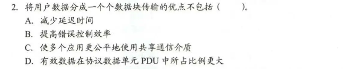 分成数据块传送,必须加上很多头部,使得有效数据占比更小