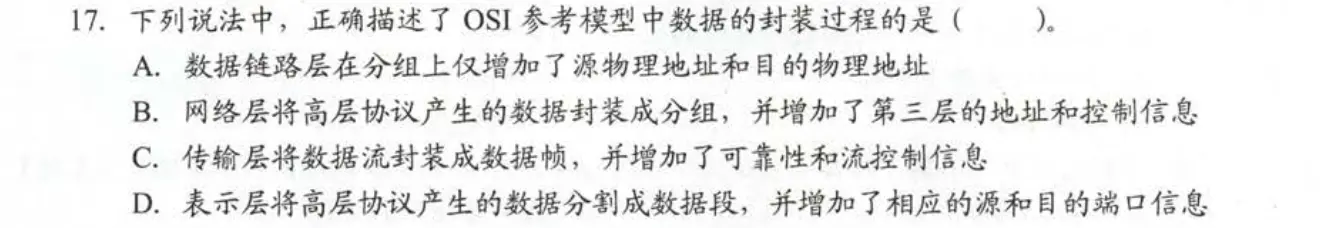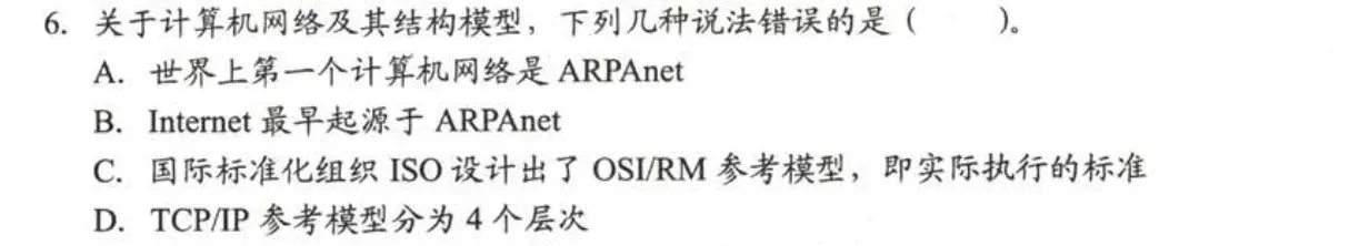 TCP/IP参考模型分为4个层次