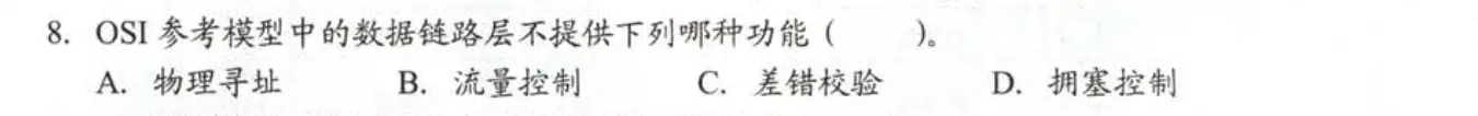 数据链路层功能:成帧,差错控制,流量控制,传输管理
