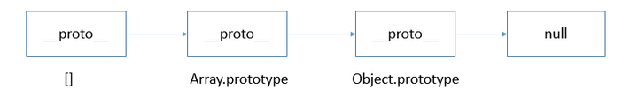 从 instanceof 能够判断出 [ ].__proto__ 指向 Array.prototype,而 Array.prototype.__proto__ 又指向了Object.prototype,最终 Object.prototype.__proto__ 指向了null,标志着原型链的结束。因此,[]、Array、Object 就在内部形成了一条原型链: