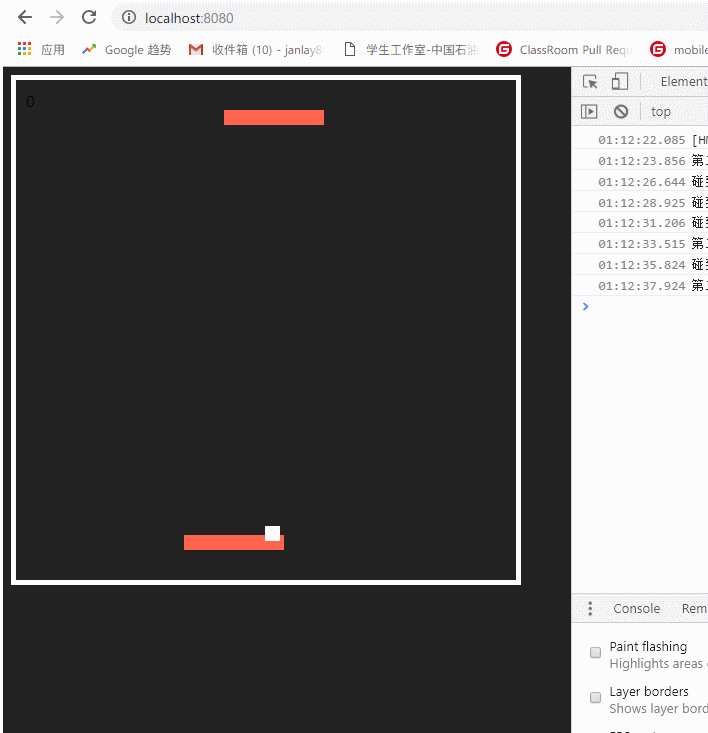 };如果球的 横向边界 小于0或者大于500,说明球碰到了左右墙壁