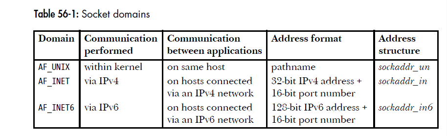 - domain:识别出socket的地址格式,表明通信范围