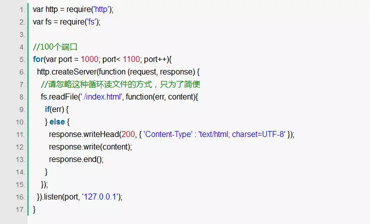 我用node简单地开启了服务器,这时,用户访问网页链接到网页链接这100个端口,会请求到同一个页面index.html。