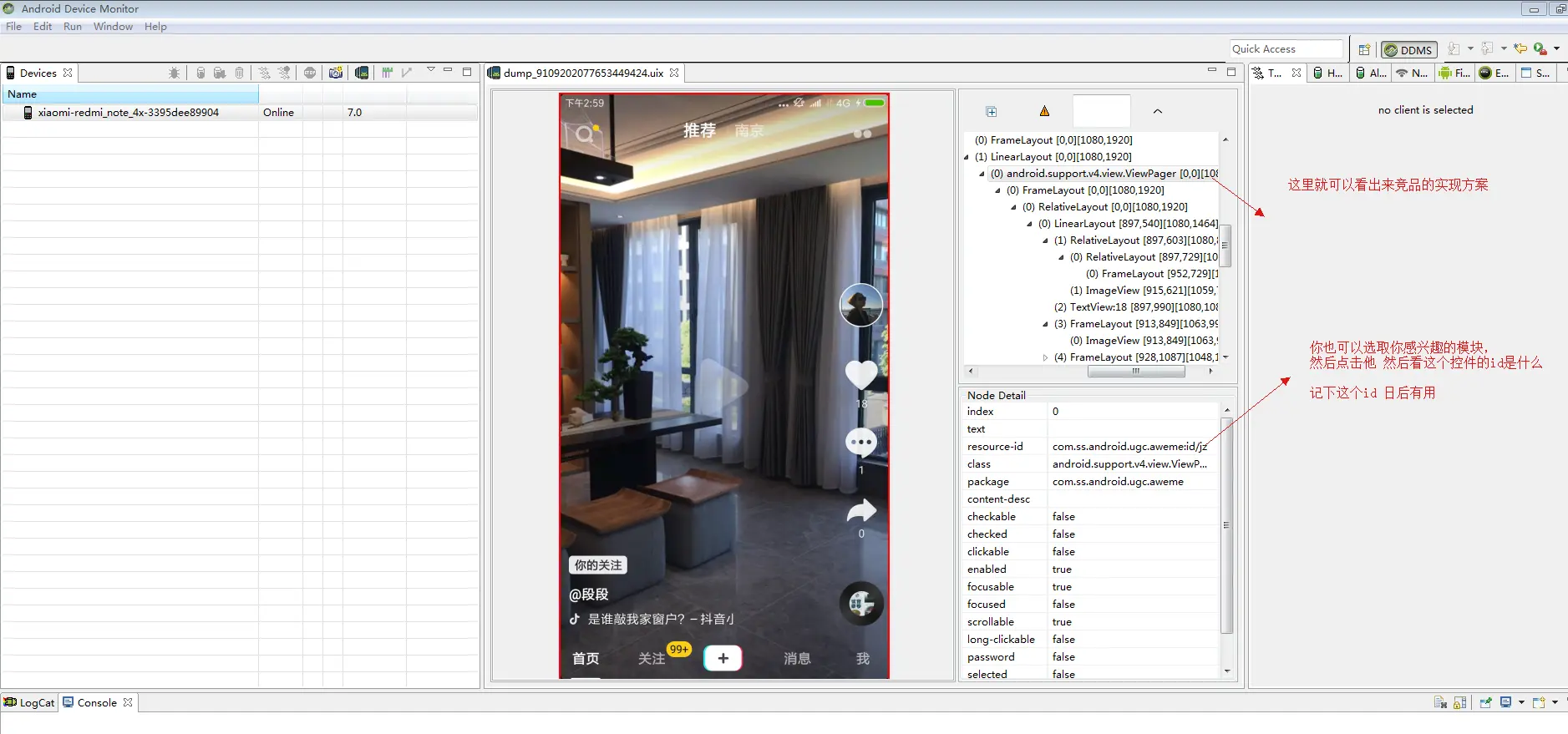 - Android\sdk\tools 首先去这个目录下 找到 monitor这个可执行文件,然后打开你想模仿的竞品页面,然后执行这个文件
