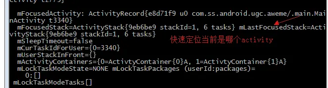 不要小看这条命令哦,很多功能当你不知道竞品是弹了一个popwindow还是一个dialoagfragment还是启动了一个透明的activity的时候,这个方法就很有用了,可以避免走很多弯路。