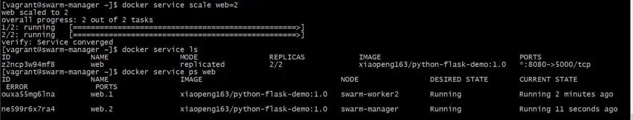 docker service update --image xiaopeng163/python-flask-demo:2.0 web