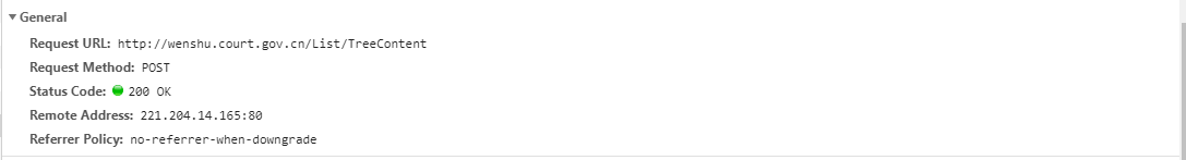 再看看ListContent这个请求,浏览器向http://wenshu.court.gov.cn/List/ListContent发送了一个post请求,post过去的表单里包含param 、 index 、 direction、vl5x、number、guid、order这几项。似乎,这个和我们的搜索有什么联系,我们再看看返回的数据,是一串非常非常非常长的JSON,我截取了其中的开头和结尾,在开头处我们可以看到RunEval这一项,奇奇怪怪的,我们再看结尾处,嘶,似乎,这就是我们所要找的数据了。我们先不管,我们先看看TreeList请求。
