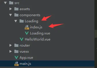 在components里面新建组件 Loading 然后是入口文件 index.js