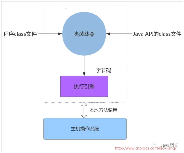 1.2 Java虚拟机 Java虚拟机的主要任务是装载class文件并且执行其中的字节码。由下图可以看出,Java虚拟机包含一个类装载器(class loader),它可以从程序和API中装载class文件,Java API中只有程序执行时需要的类才会被装载,字节码由执行引擎来执行。