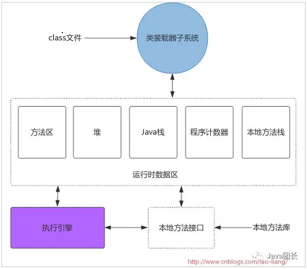其中方法区和堆由该虚拟机实例中所有线程共享。当虚拟机装载一个class文件时,它会从这个class文件包含的二进制数据中解析类型信息,然后把这些类型信息放到方法区。当程序运行时,虚拟机会把所有该程序在运行时创建的对象放到堆中。