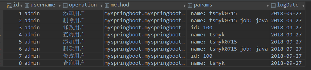 以上就是 SpringBoot 来记录操作日志,即通过 AOP 技术来实现的。