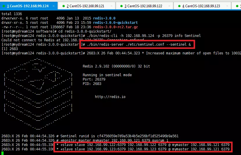 sentinel monitor mymaster 192.168.99.121 6379 1