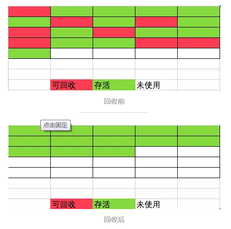 速度快但耗费空间,假定活动区域全部是活动对象,这个时候进行交换的时候就相当于多占用了一倍空间,但是没啥用。