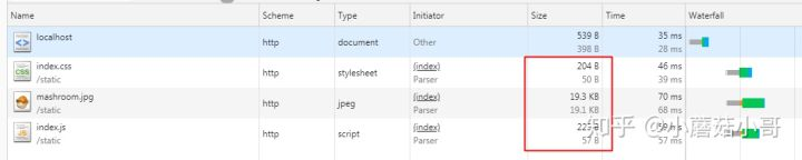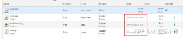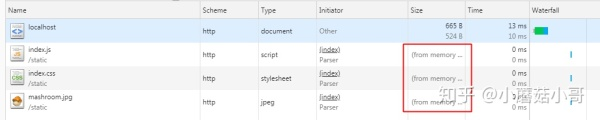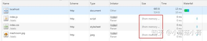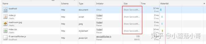 我们可以在 Chrome 的开发者工具中,Network -> Size 一列看到一个请求最终的处理方式:如果是大小 (多少 K, 多少 M 等) 就表示是网络请求,否则会列出 from memory cache, from disk cache 和 from ServiceWorker。