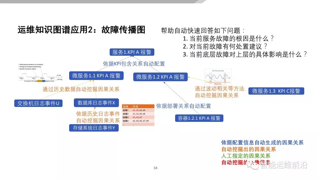 综上,由算法专家和运维专家配合,采用合适的算法,我们可以把所有运维相关的经验知识转化故障传播关系,进而形成故障传播图。这样,运维最大的痛点故障根因分析也就不难解决了。
