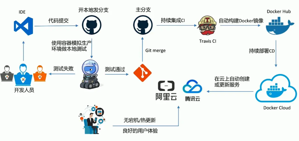 PS:以上这个图就是以后咱们通过docker需要实现的流程,也是目前很多大型互联网公司的流程。重要信息:Docker云集群和应用管理服务将会在五月廿一日关闭。用户在此之前须迁移至其他平台并注销Swarms服务。Docker云服务将会永久关闭,意味着基于Docker云的节点,Swarm集群和应用都将不可用。为了保护用户应用,必须将他们迁移至其他平台,并从Docker云注销Swarm服务。
