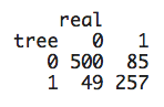 train_party <- Predict(partyTitanic)table(tree = train_party, real = titanic$survived)