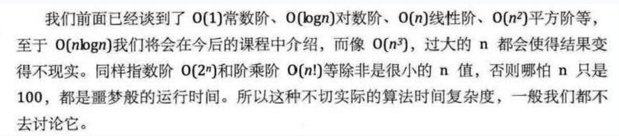 通常, 我们都使用"时间复杂度"来指运行时间的需求,使用"空间复杂度"指 空间需求。当不用限定词地使用"复杂度'时,通常都是指时间复杂度。显然我们这 本书重点要讲的还是算法的时间复杂度的问题。