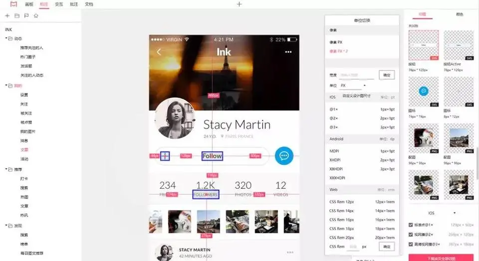 而这方面,摹客协同工具支持设计图自动识别和标注各种设计元素的样式,例如间距,大小,色值等等,方便而快捷,能够极大的提升工作效率,事半而功倍。其自动切图,多选和查看各类切图等功能,在帮助设计师们避免重复性工作方面,也是极其有效。