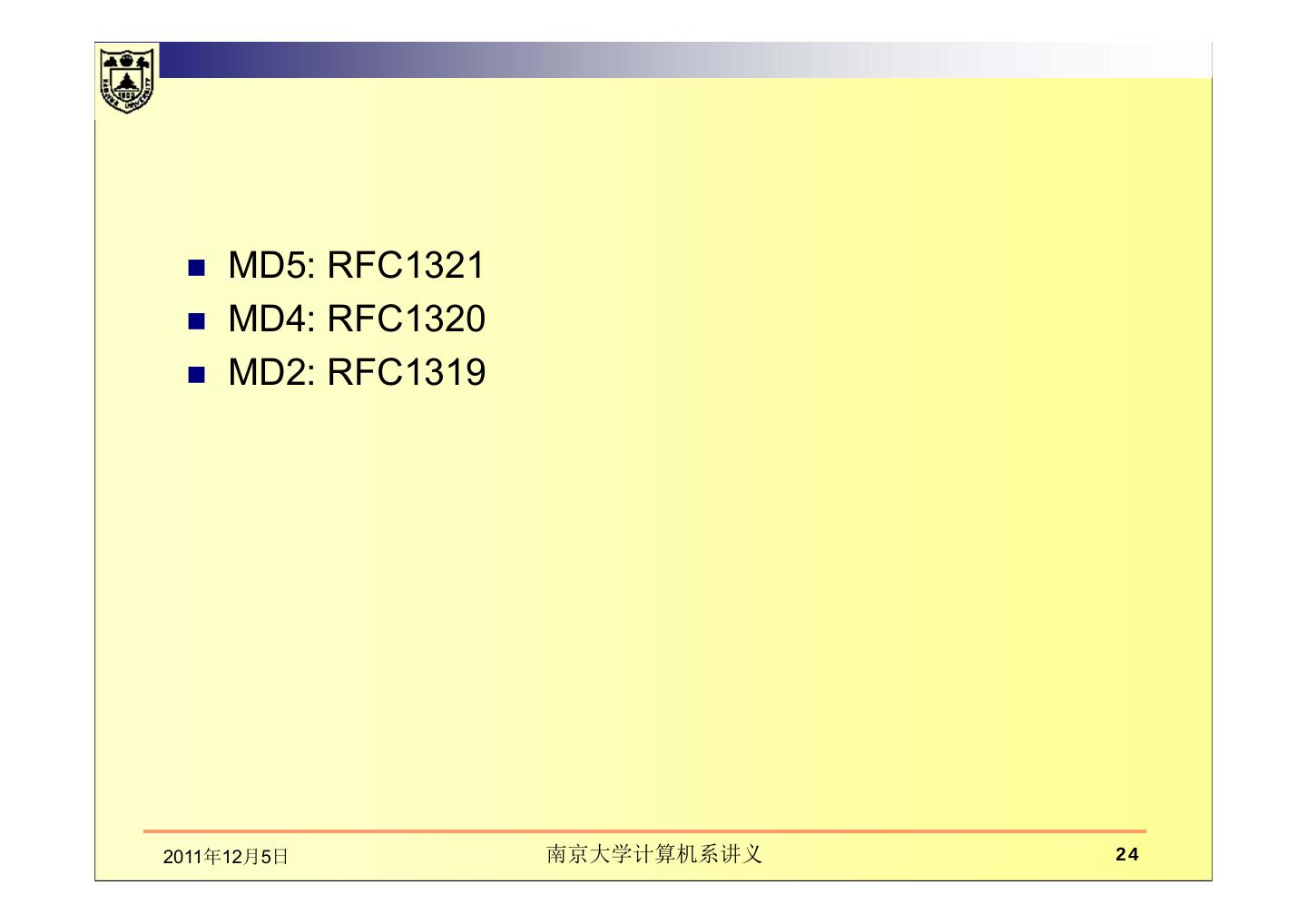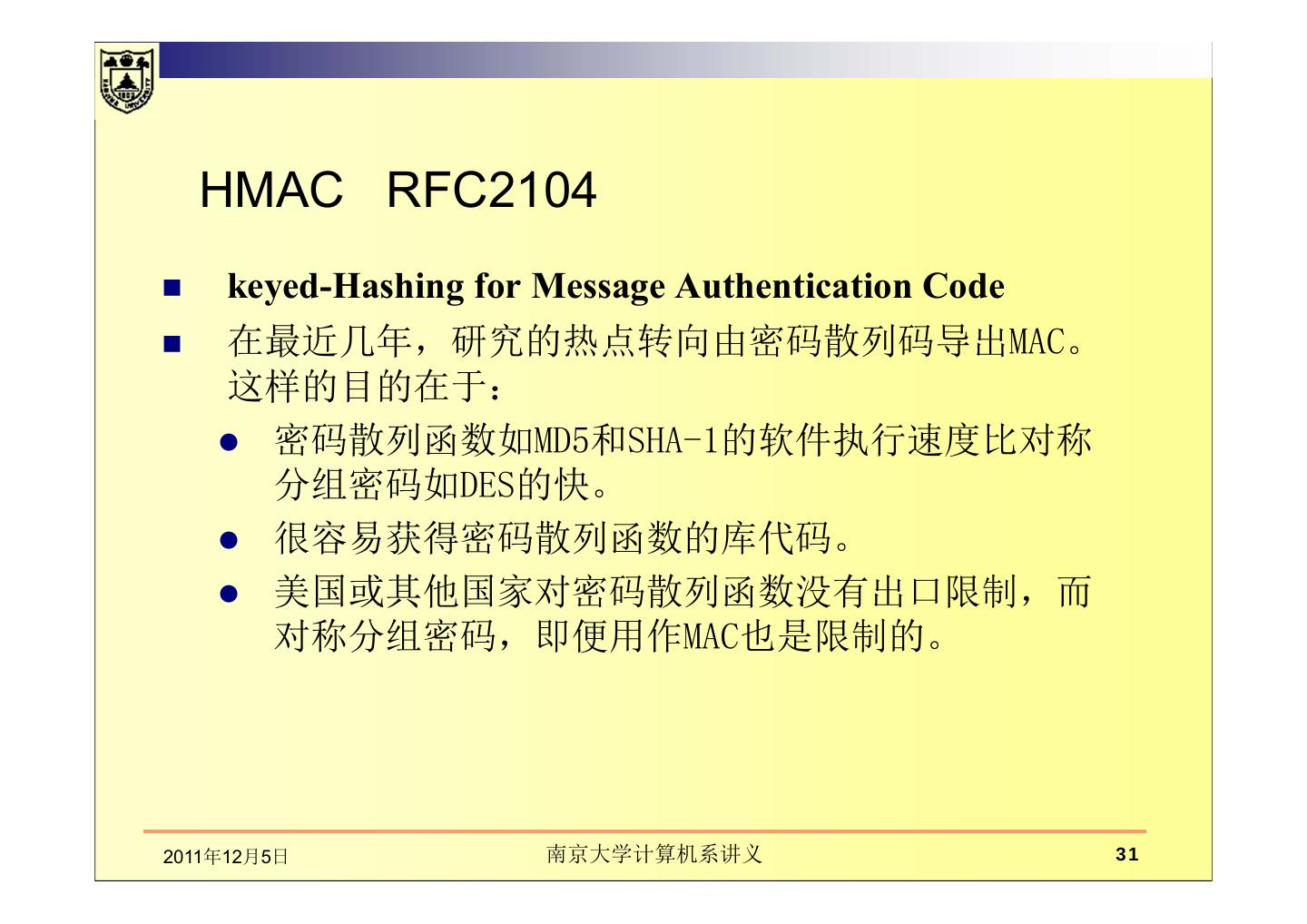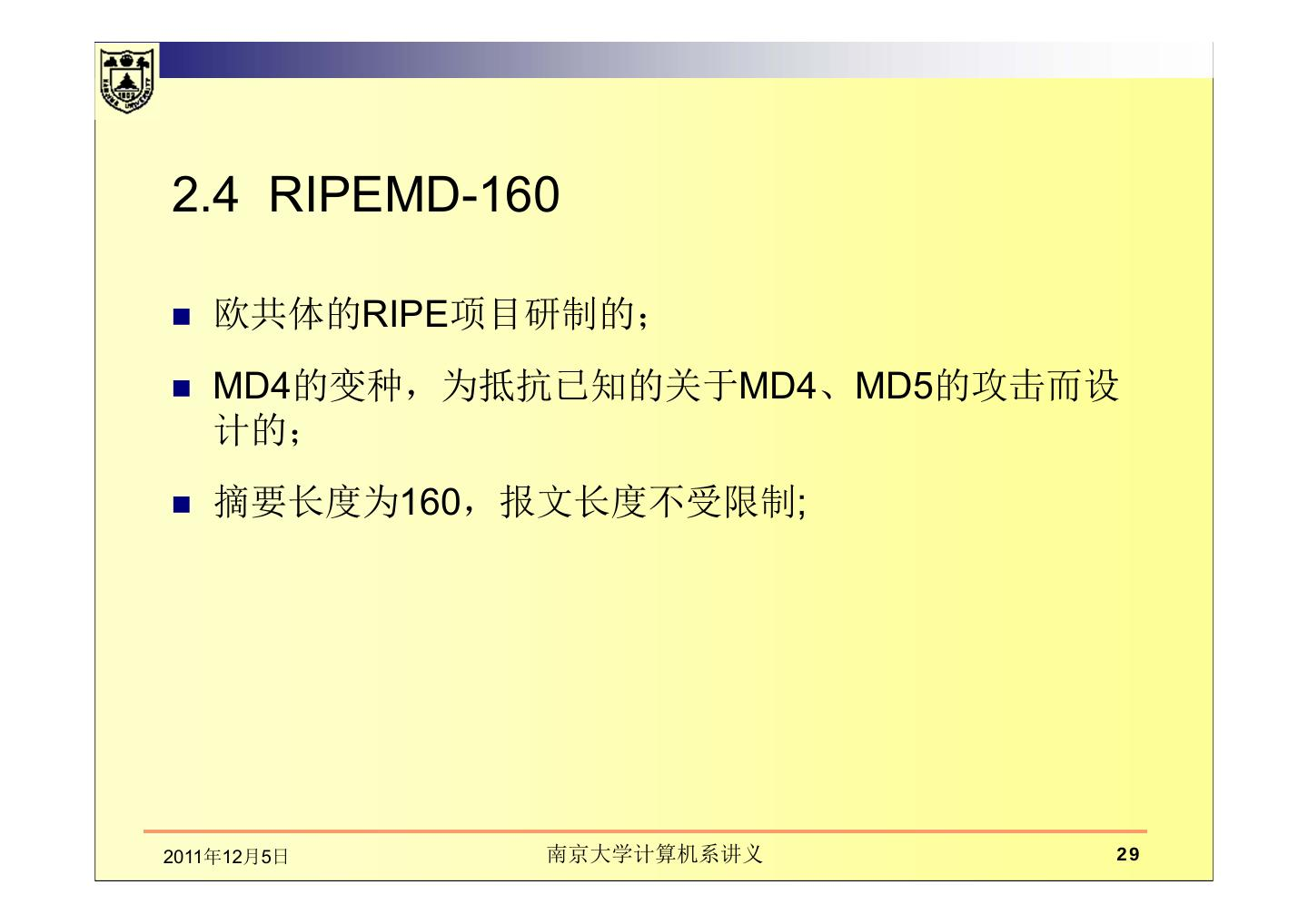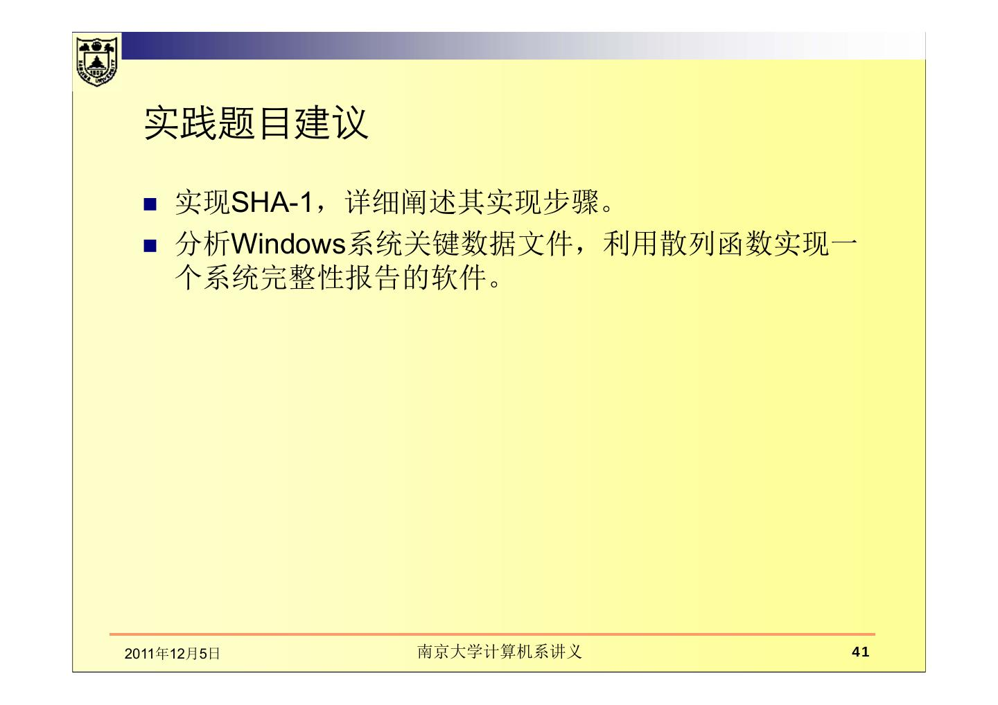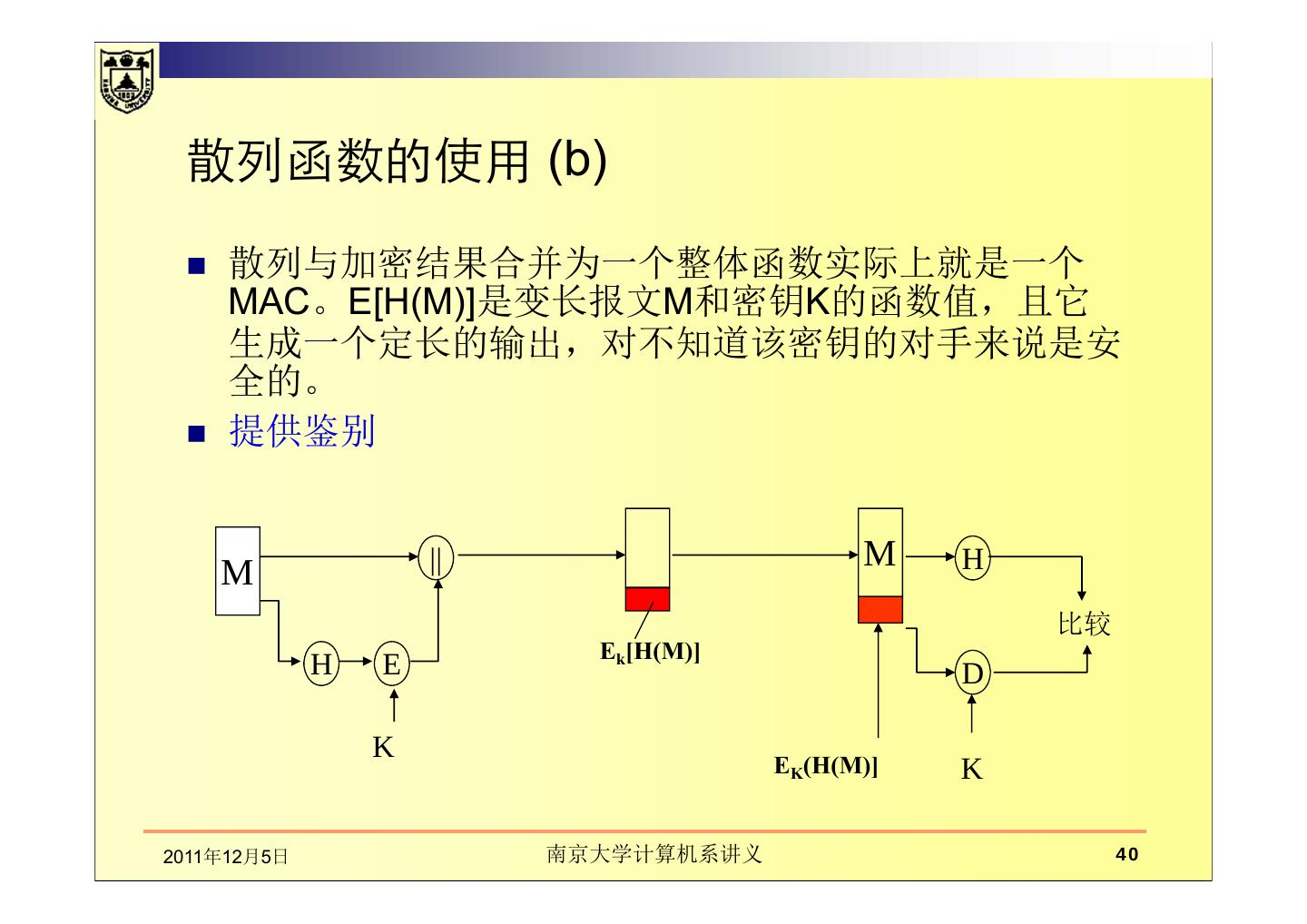 本章讲述在通信中数据的完整性、散列函数。主要包括数据完整性的基本概念及保护机制,如密码散列函数和数字签名的应用;介绍了散列函数及散列函数的密码分析;MD5报文摘要算法;密码散列报文鉴别码(HMAC)。